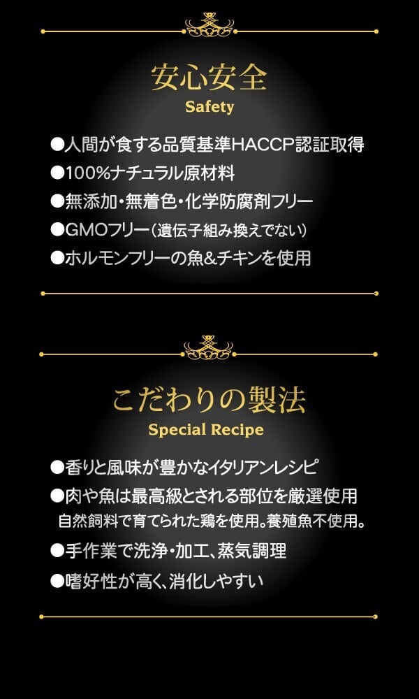 イタリアンレシピの猫用ウェットフード。無添加&無着色の美味しいナチュラルフード。