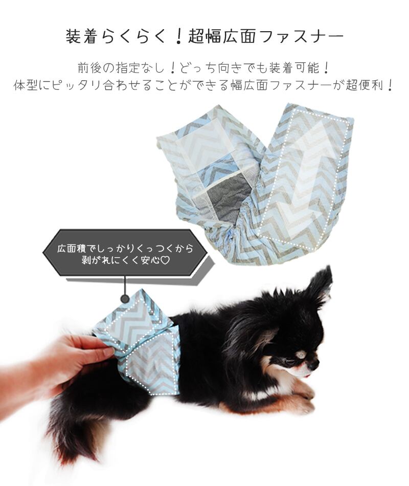 お出かけや旅行・シニア犬の介護など様々なシーンで大活躍する長時間超吸水オムツです。