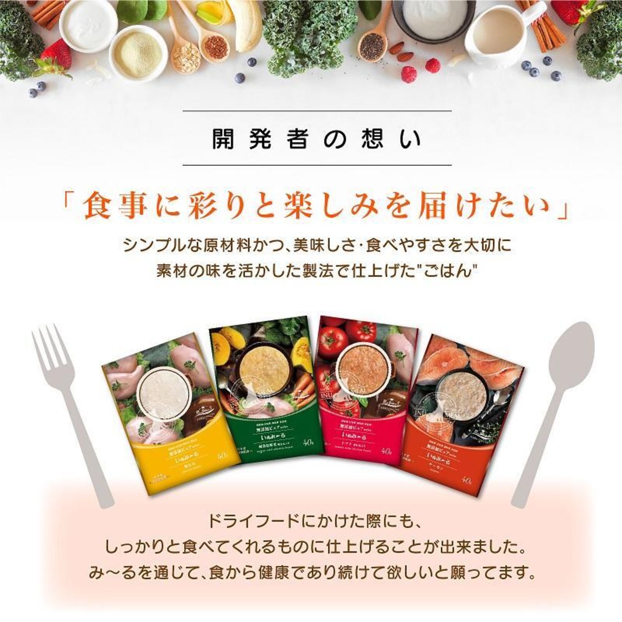 ・ドライフードに絡みやすい粒感のあるなめらかさと、程よいとろみがあり、最後までおいしく食べられます。