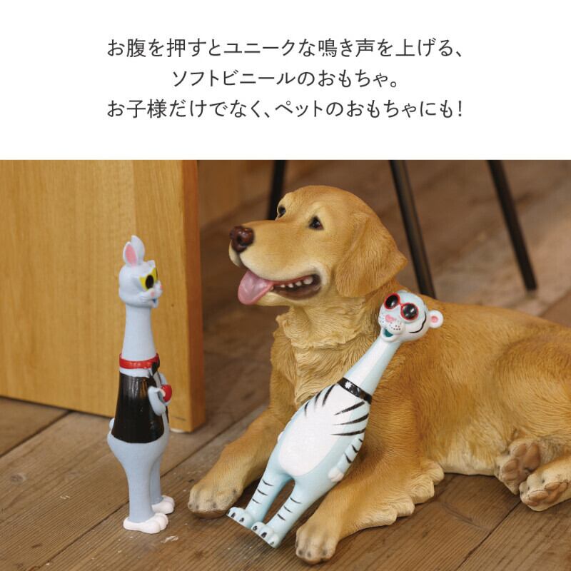 お腹を軽く押すとけたたましく鳴く、ユニークなおもちゃです。素材はソフトビニール製で、ペットグッズにも!