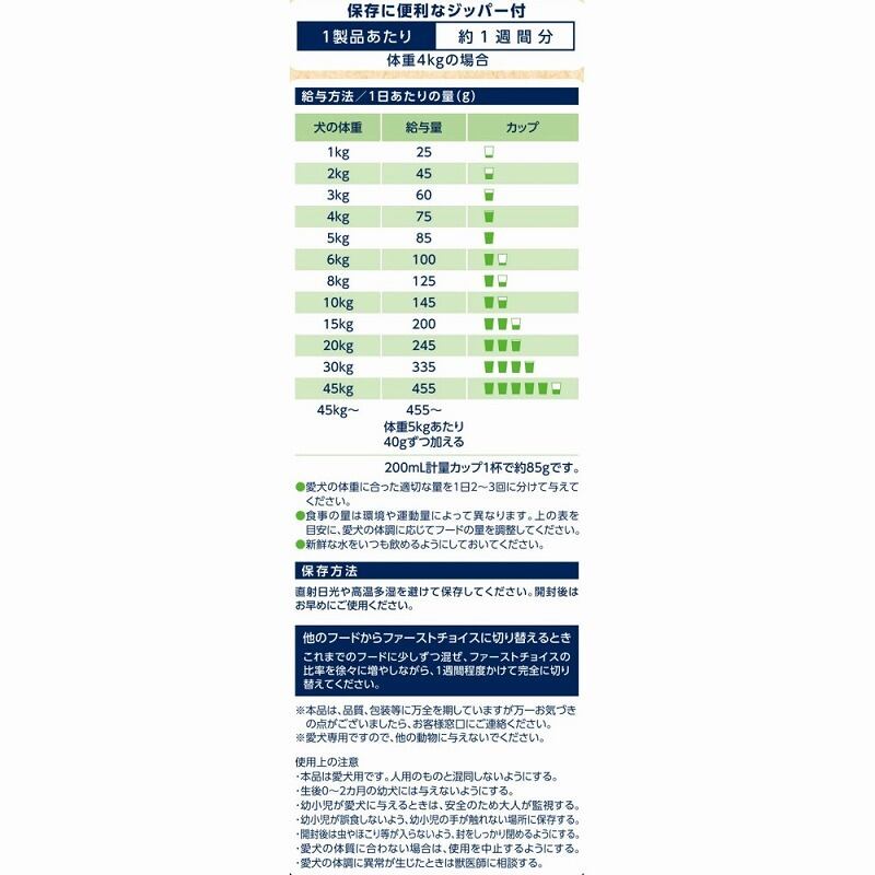 ・食事の量は環境や運動量によって異なります。愛犬の体調に応じてフードの量を調整してください。