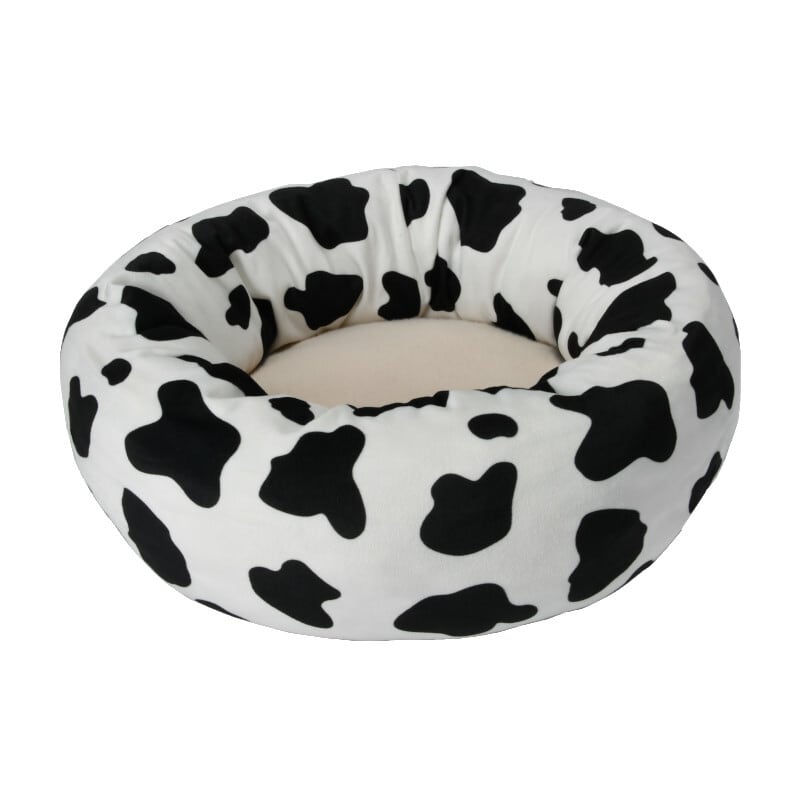 ウシ柄のふわふわベッドです。