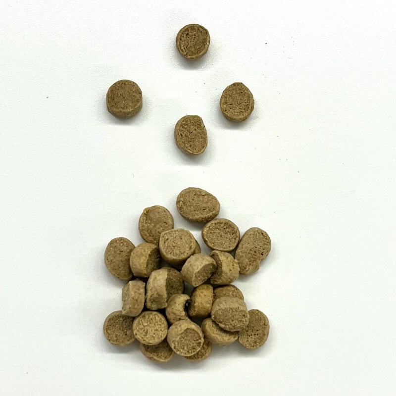 素材:鮫肉、大麦、青玄米、かつお節、なたね油、ブロッコリー、小松菜、ワカメ、ひじき、粟、ビール酵母、卵殻カルシウム、FK-23濃縮乳酸菌