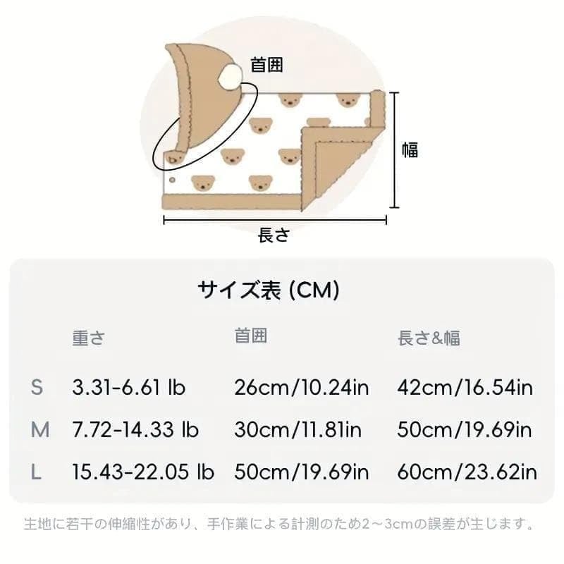 クマの耳付きフードで暖かく、ブランケットとしても使えるペット用マント。