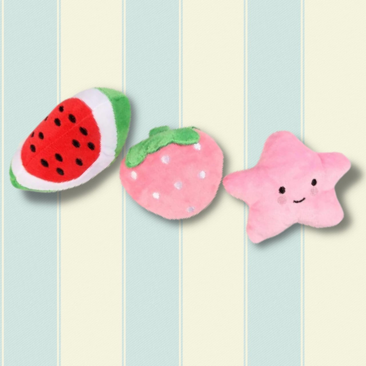 タイムセール12/13 22時~ ペット(犬・猫)おもちゃ ぬいぐるみ:すいか、いちご、ほし