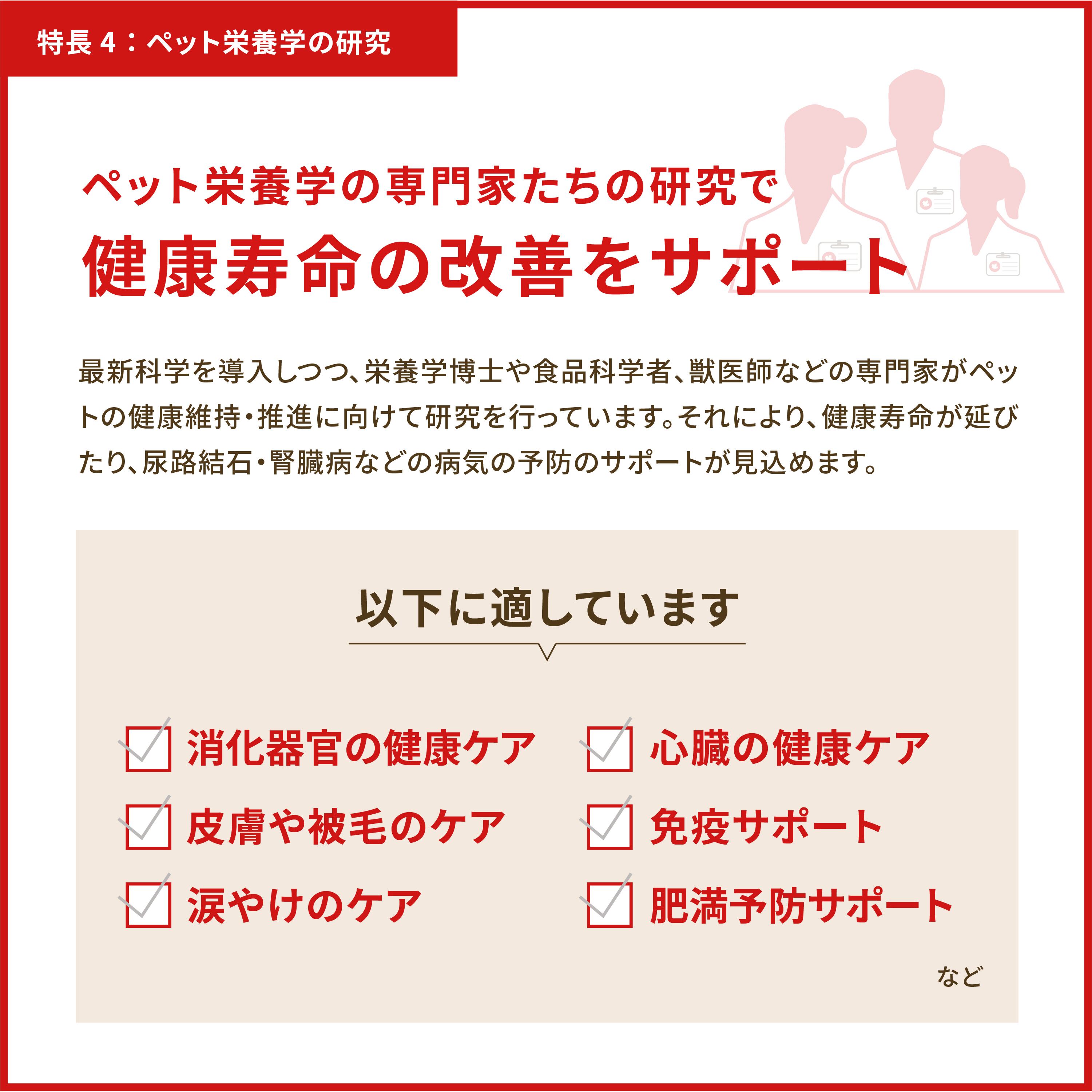 カルシウム 1.5%、リン 1.1%、オメガ6脂肪酸 2.1%、オメガ3脂肪酸 2.1%、DHA 0.7%、EPA 0.5% 代謝エネルギーは 3880kcal/KGまたは250mlカップ1杯(120g)につき、466kcalです。