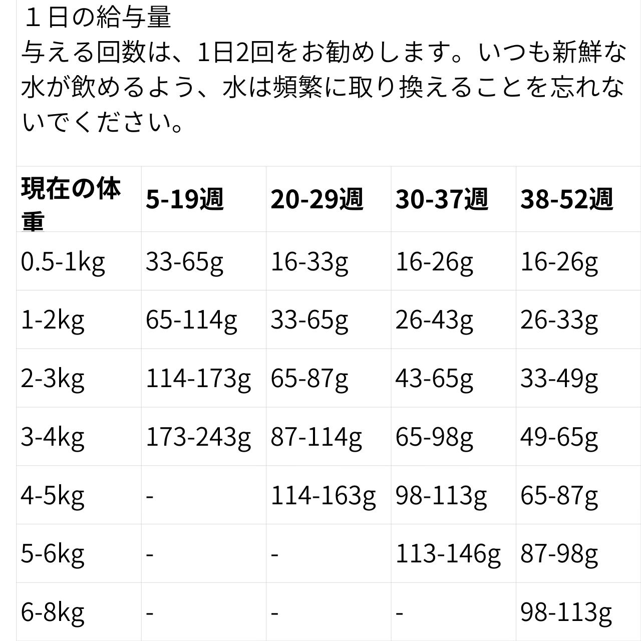 "カルシウム 1.3%、リン 1%、マグネシウム 0.1%、タウリン 0.2%、オメガ6脂肪酸 4%、オメガ3脂肪酸 1.2%、DHA 0.4%、EPA 0.4% 代謝エネルギーは4120kcal/KGまたは250mlカップ1杯(130g)につき、536kcalです。