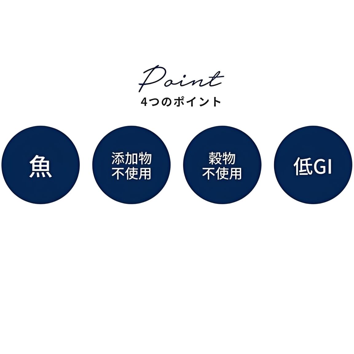 たんぱく質の供給源として新鮮な魚を使用し、魚由来のオメガ3およびオメガ6をバランスよく豊富に摂取することが可能です。